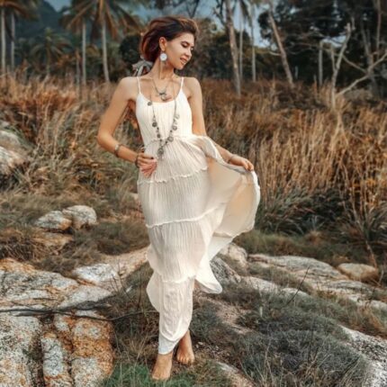 Chloe Boho Wedding Dress – Ruffled Scoop Neck Cotton Maxi Gown | ZinniaPearl