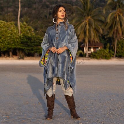 Handmade Cotton Velvet Poncho: Boho Henley Button Plus Size – Bosco