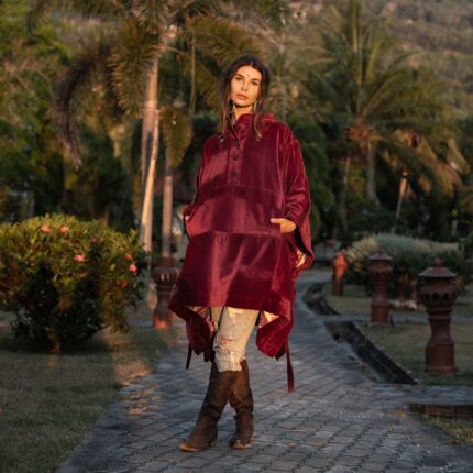 Deana Velvet Poncho: Boho Cotton Velvet Pullover with Henley Collar – Bosco