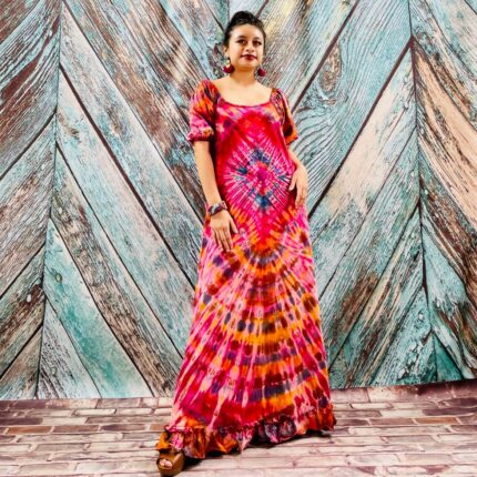 Celeste Hand-Dyed Cotton Maxi Dress – Boho Festival Off-Shoulder Tie-Dye | ZinniaPearl