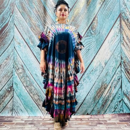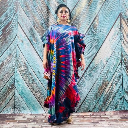 Hand Tie-Dye Cotton Maxi Kaftan Dress – Boho Festival Style | Ema