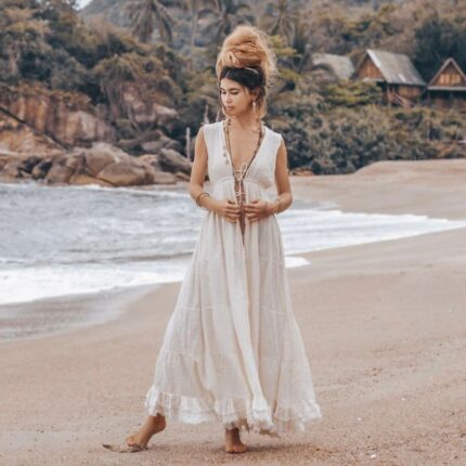 Sheer Cotton Voile Maxi Dress: Boho Beach Wedding Gown – Beata