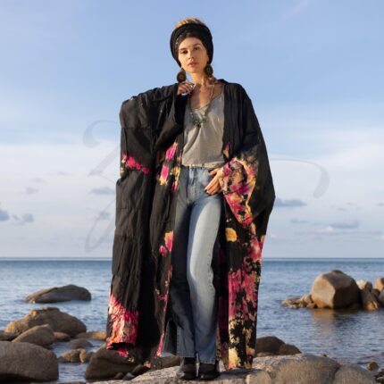Tie Dye Kimono Duster: Boho Patchwork Cotton Robe – Veda