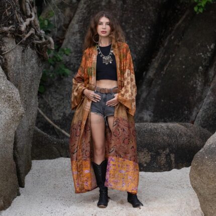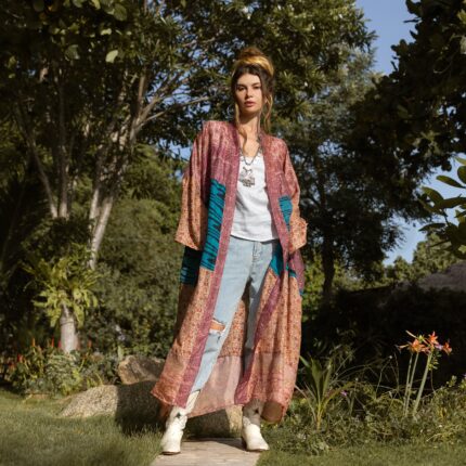 Vintage Silk Kimono Duster: Upcycled Boho Patchwork Robe – MAI