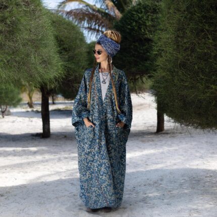Vintage Quilted Cotton Kimono: Indigo Block Print Boho Duster – Tsubaki