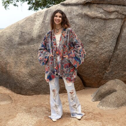 Velvet Kimono Jacket: Plus Size Boho Chic Cotton Winter Coat – Mei