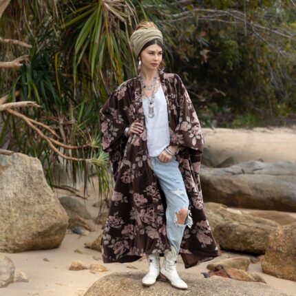 Velvet Kimono Robe: Desert Canopy Floral, Plus Size Boho Duster – Mai