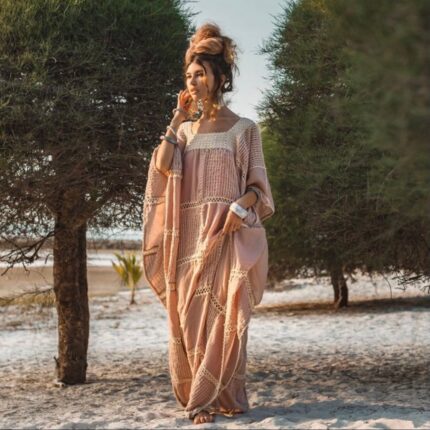 Zora Kaftan – Handmade Crochet Cotton | Rose Boho Maxi Dress by ZinniaPearl