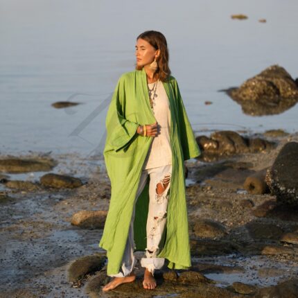 Wild Aloe Cotton Gauze Kimono Duster: Plus Size Boho Robe with Pockets – Willow