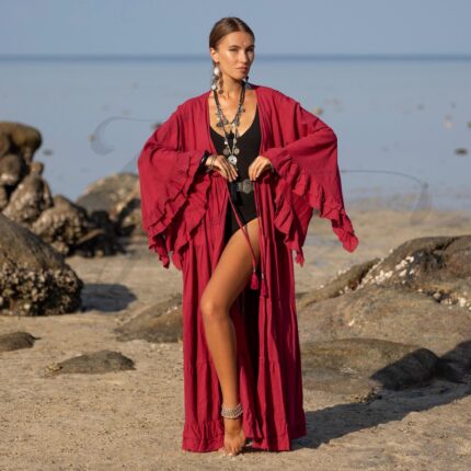 Wild Hibiscus Kimono Duster – Plus Size Hemp Cotton Boho Robe | Kara by ZinniaPearl – Wedding Photoshoot, Bridal Shower & Bridesmaid Gift