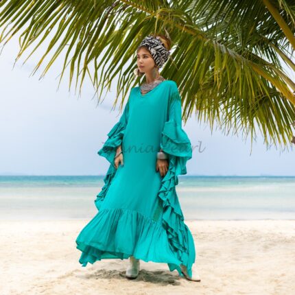 Ruffle Trimmed Viscose Kaftan Dress – Boho Beach Abaya, Plus Size | Wild Heart