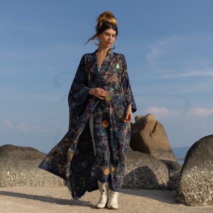 Handcrafted Cotton Canvas Kimono Duster: Celestial Patchwork, Boho Chic – Kosmos