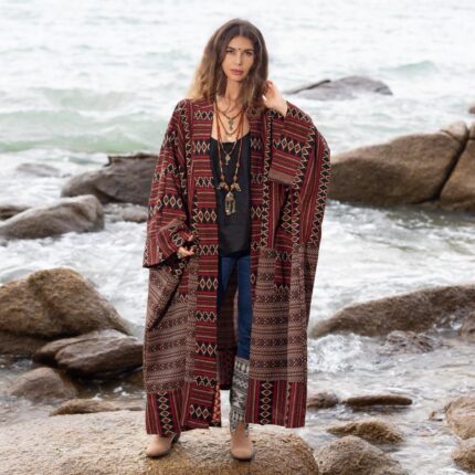 Plus Size Handwoven Gheri Cotton Kimono Duster: Boho Winter Coat – Ivara