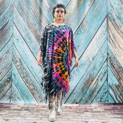 Hand Tie-Dye Fringe Kaftan – Boho Festival Poncho Tunic Dress | Arlo