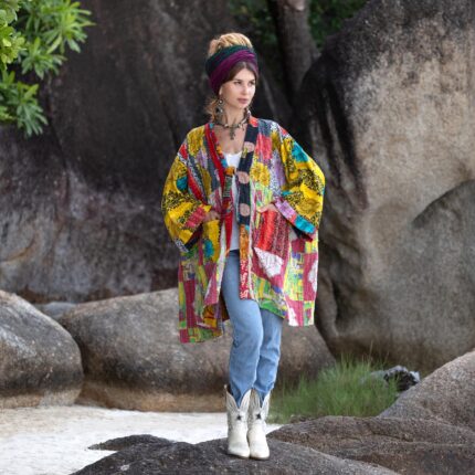 Boho Silk Kimono Duster: Handmade Patchwork Festival Robe – Nina