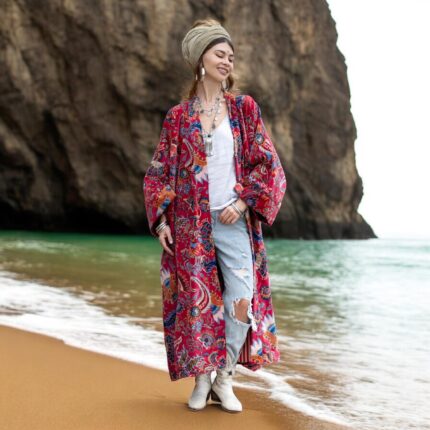 Floral Velvet Kimono Duster: Boho Chic Cotton Jacket – Mai