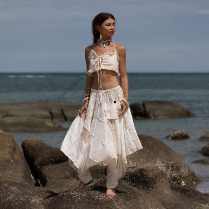 Handmade Boho Patchwork Harem Pants: Ivory Cotton Festival Trousers – Paloma