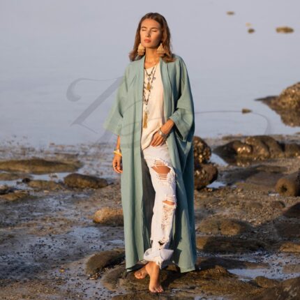 Hemp Cotton Kimono Duster: Seafoam Boho Robe, Plus Size Cover-Up – Willow