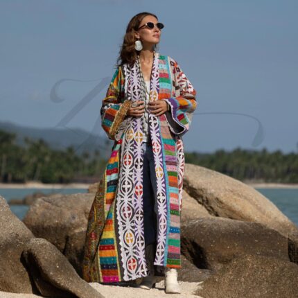 Boho Silk Kimono Duster: Handmade Patchwork Festival Robe – Nina