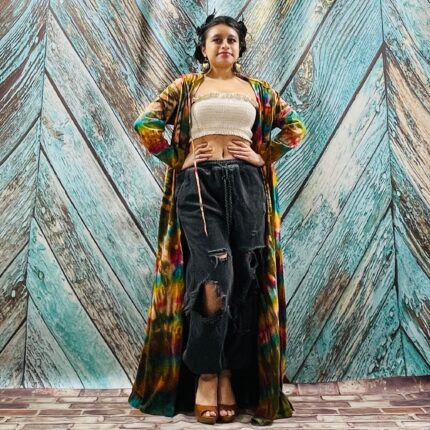 Hand Tie Dye Long Hoodie Duster: Boho Festival Jersey Cardigan