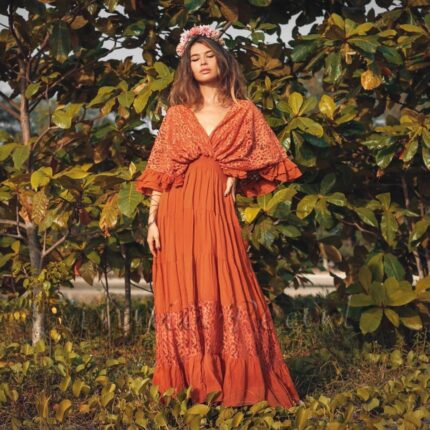 Boho Cotton Maxi Dress – Lunette Lace-Trimmed Gown in Italian Vintage Style