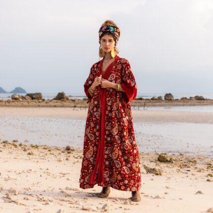 Plus Size Velvet Kimono Coat: Bohemian Cotton Lined Duster – Mai