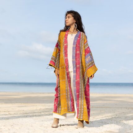 Reversible Quilted Kimono Duster Coat: Handmade Boho Cotton Maxi – Sakura