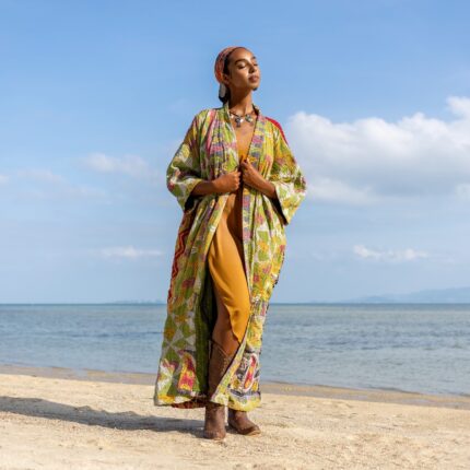 Sangria Boho Quilted Kimono Jacket: Silk Patchwork Statement Piece – Nina
