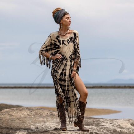 Tie-Dye Cotton Poncho Dress: Boho Fringe Festival Cover-Up – Arlo