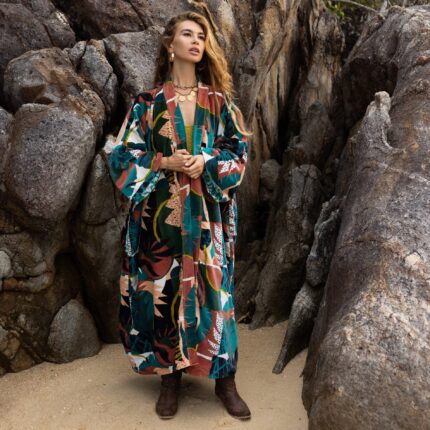 Luxury Velvet Kimono Robe: Handmade Boho Duster Jacket – Mai