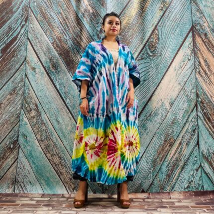 Bohemian Tie-Dye Maxi Dress – Handmade Cotton Kaftan, Plus Size Festival Gown | Ema