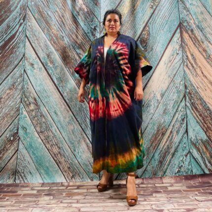 Cypress Hand Tie-Dye Cotton Maxi Kimono Duster – Boho Festival Cardigan | ZinniaPearl