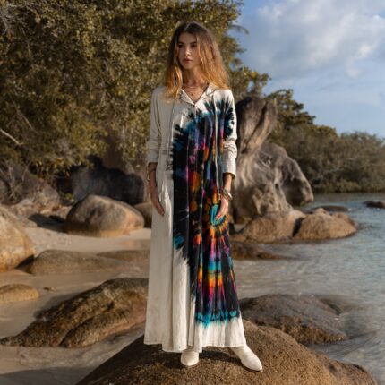 Hand Tie-Dye Maxi Kimono Duster: Boho Festival Cotton Cardigan – Yuma