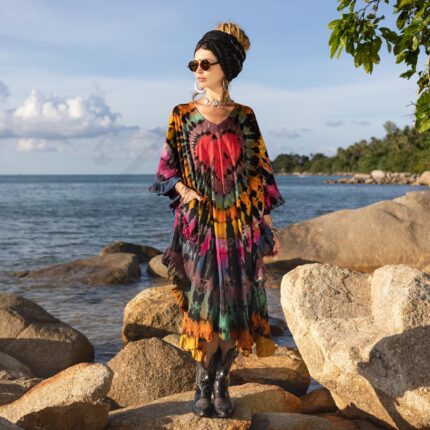 Tie-Dye Fringe Tunic Dress: Boho Festival Kaftan, Plus Size Cover-Up – Arlo