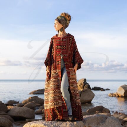 Handwoven Boho Kimono Robe: Rustic Mahogany Hooded Duster Coat – Imperial
