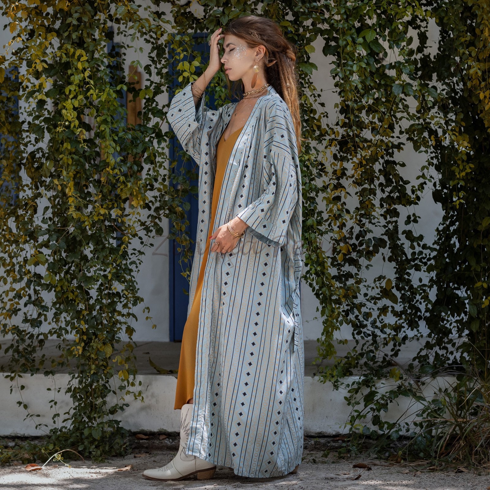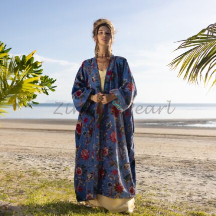 Introducing our Ada – Printed Viscose Kimono, a versatile and trendy addition to your wardrobe. This kimono features a drop shoulder design, providing a relaxed and comfortable fit for all body types. The detachable waistband adds definition and allows for customizable styling options.