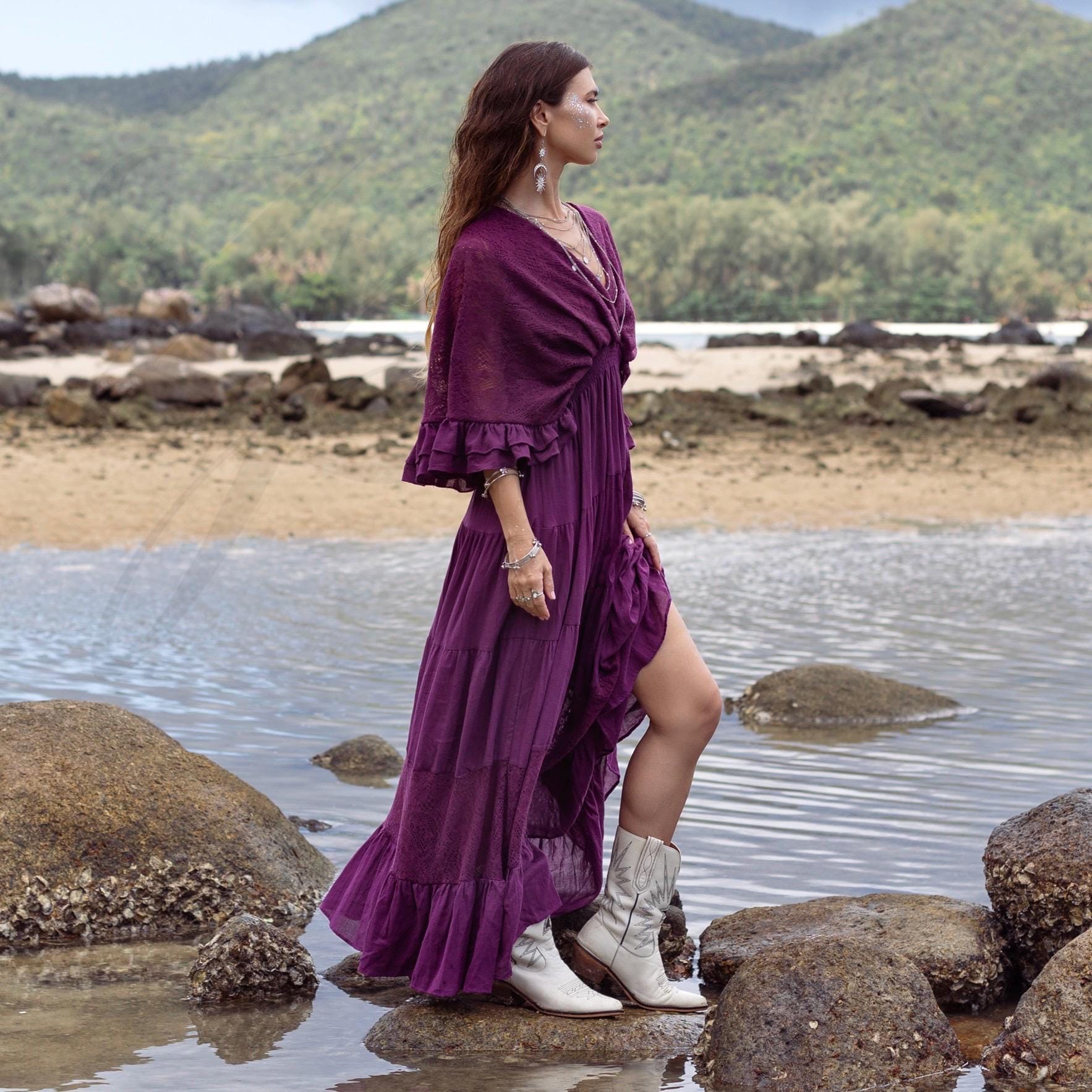 Amethyst Lace Kaftan: Boho Destination Wedding Gown – Beata