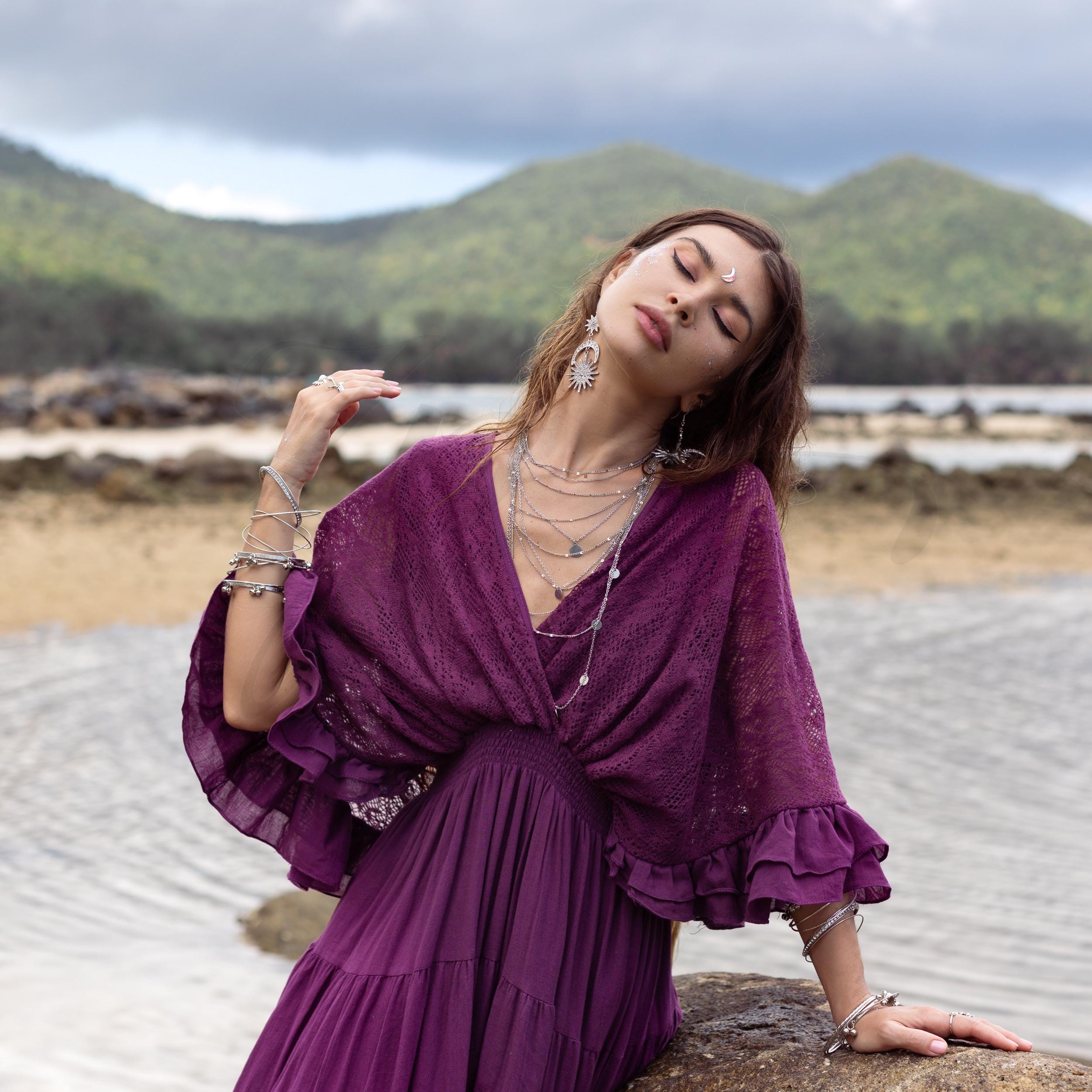 ✨ Embrace your inner goddess with the enchanting Lunette amethyst lace kaftan! ✨