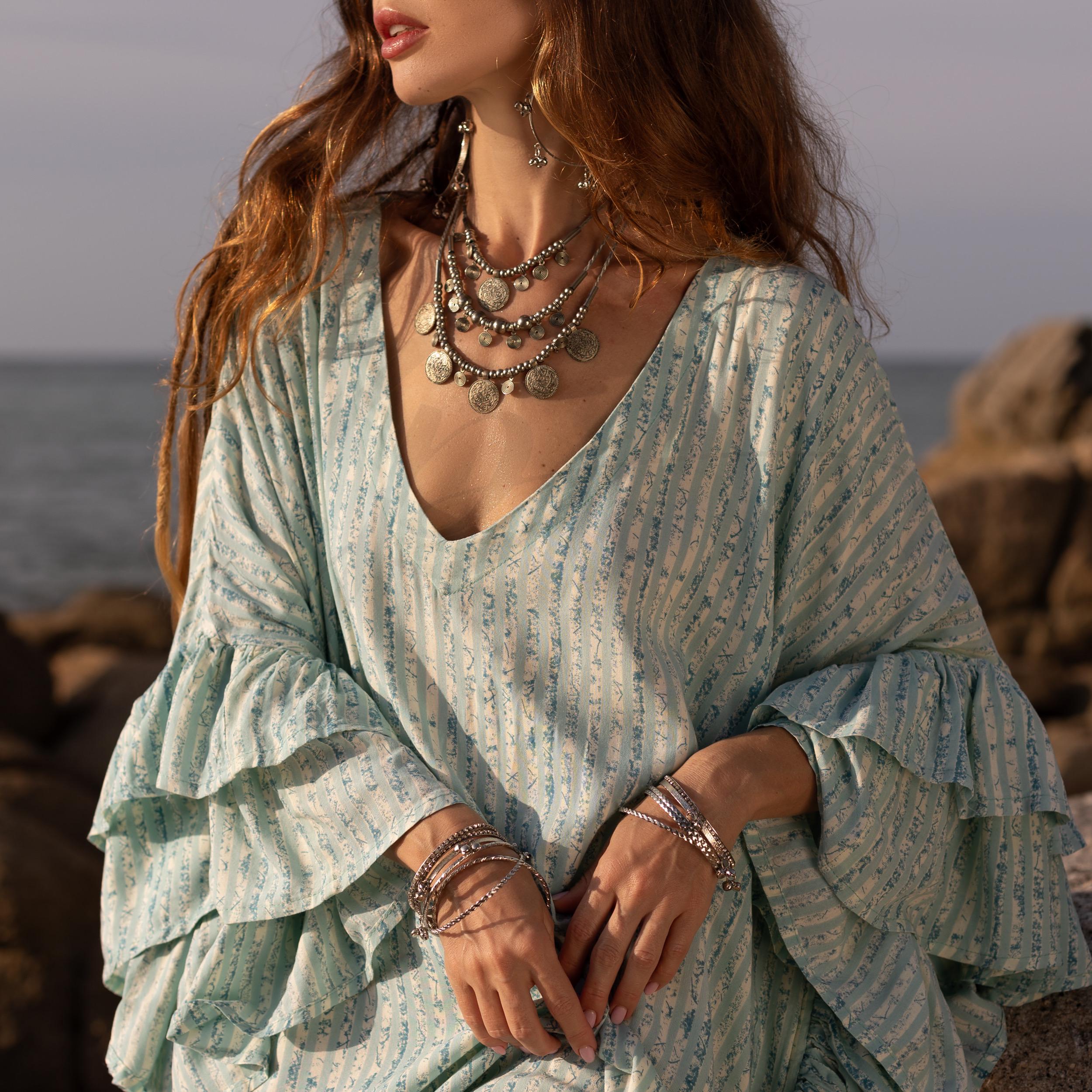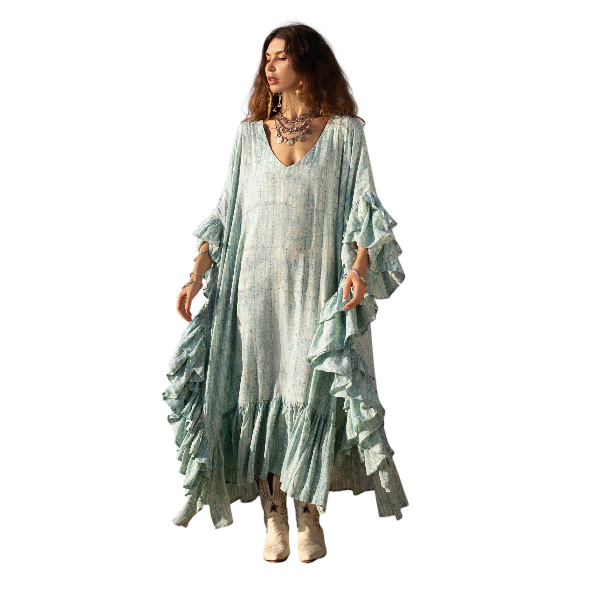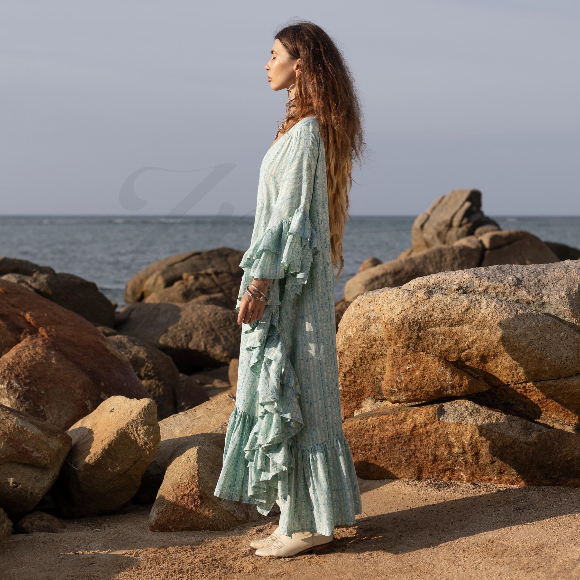 Aqua Breeze Boho Maxi Dress: Rayon Kaftan, V-Neck Festival Dress – Wild Heart