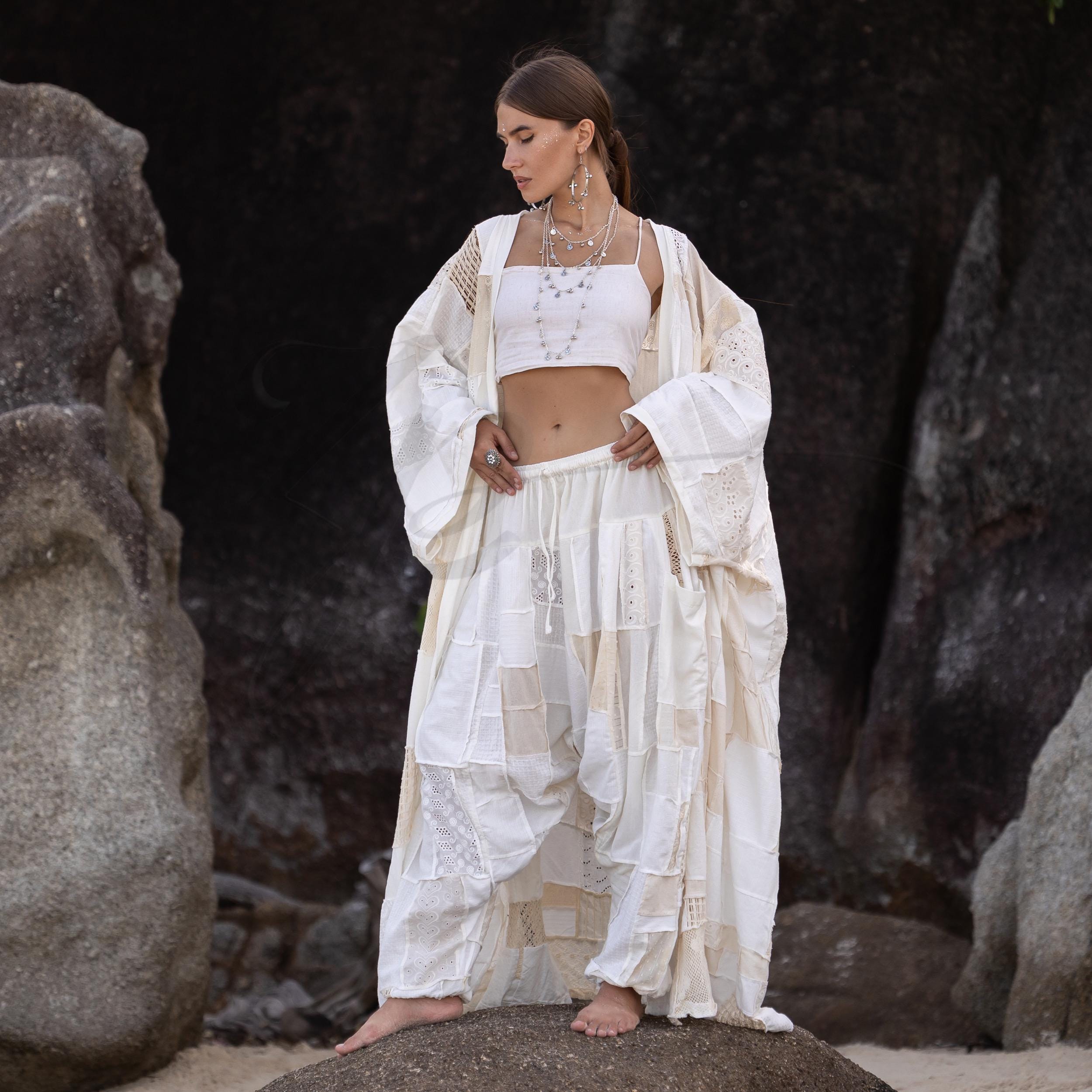 Spiritu Bliss Duster & Matching Harem Pants – Boho Cotton Lace Ensemble by ZinniaPearl