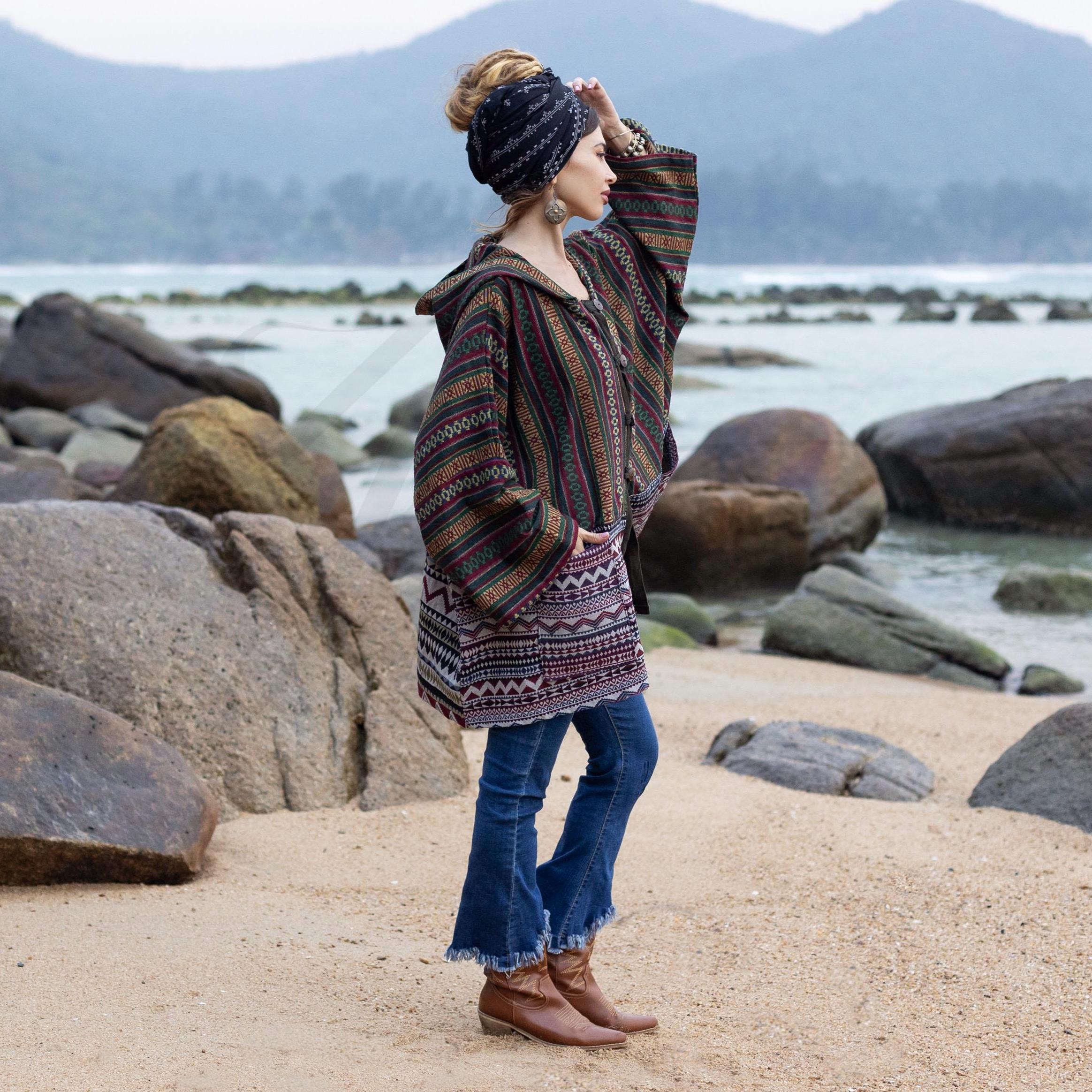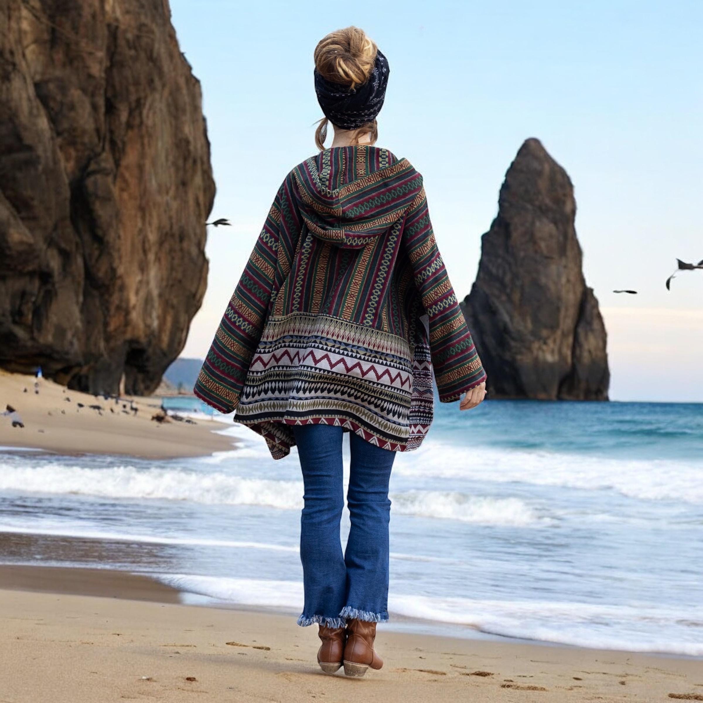Boho Hooded Baja Jacket – Sahara Weave in Earth Echo