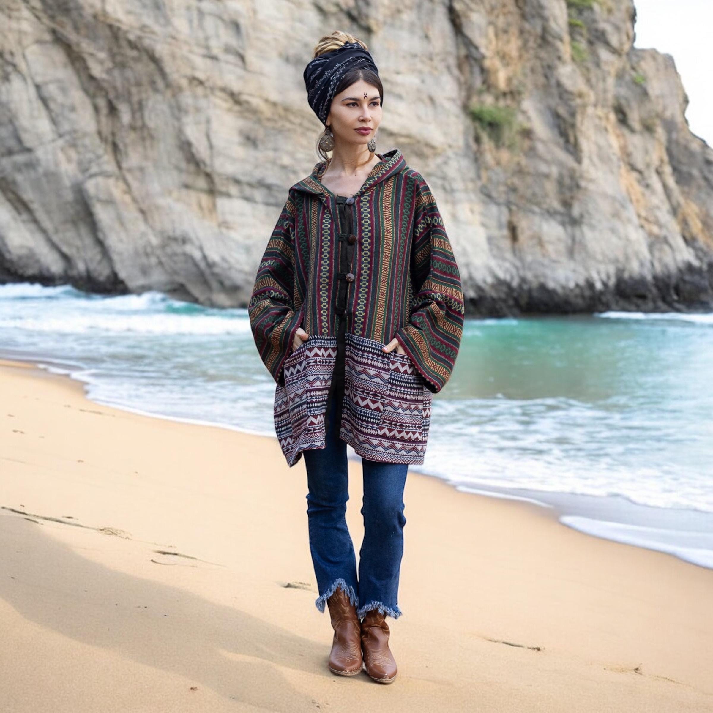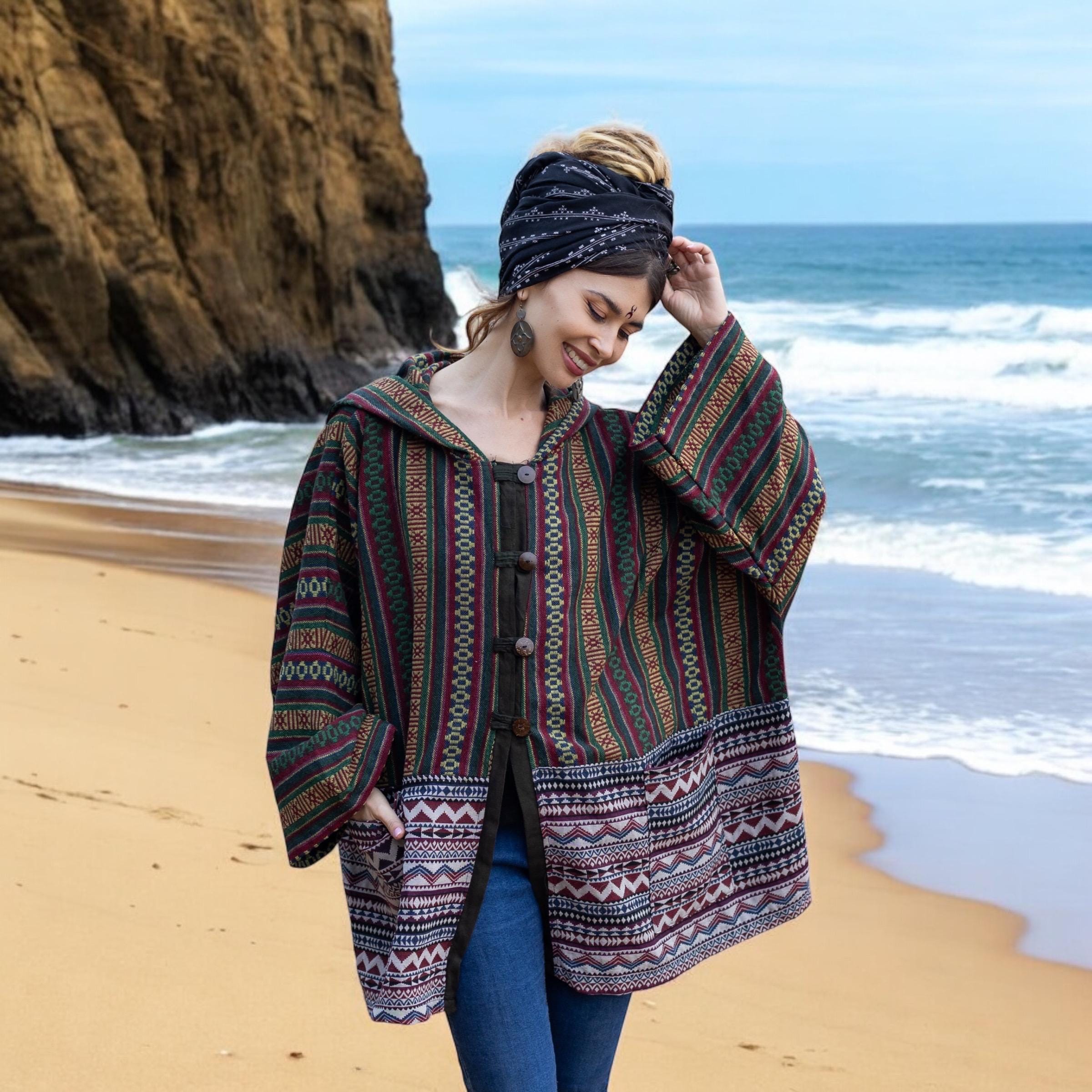 Ethnic Cotton Festival Coat | Plus Size Poncho Layer | Fall Travel Robe by ZinniaPearl