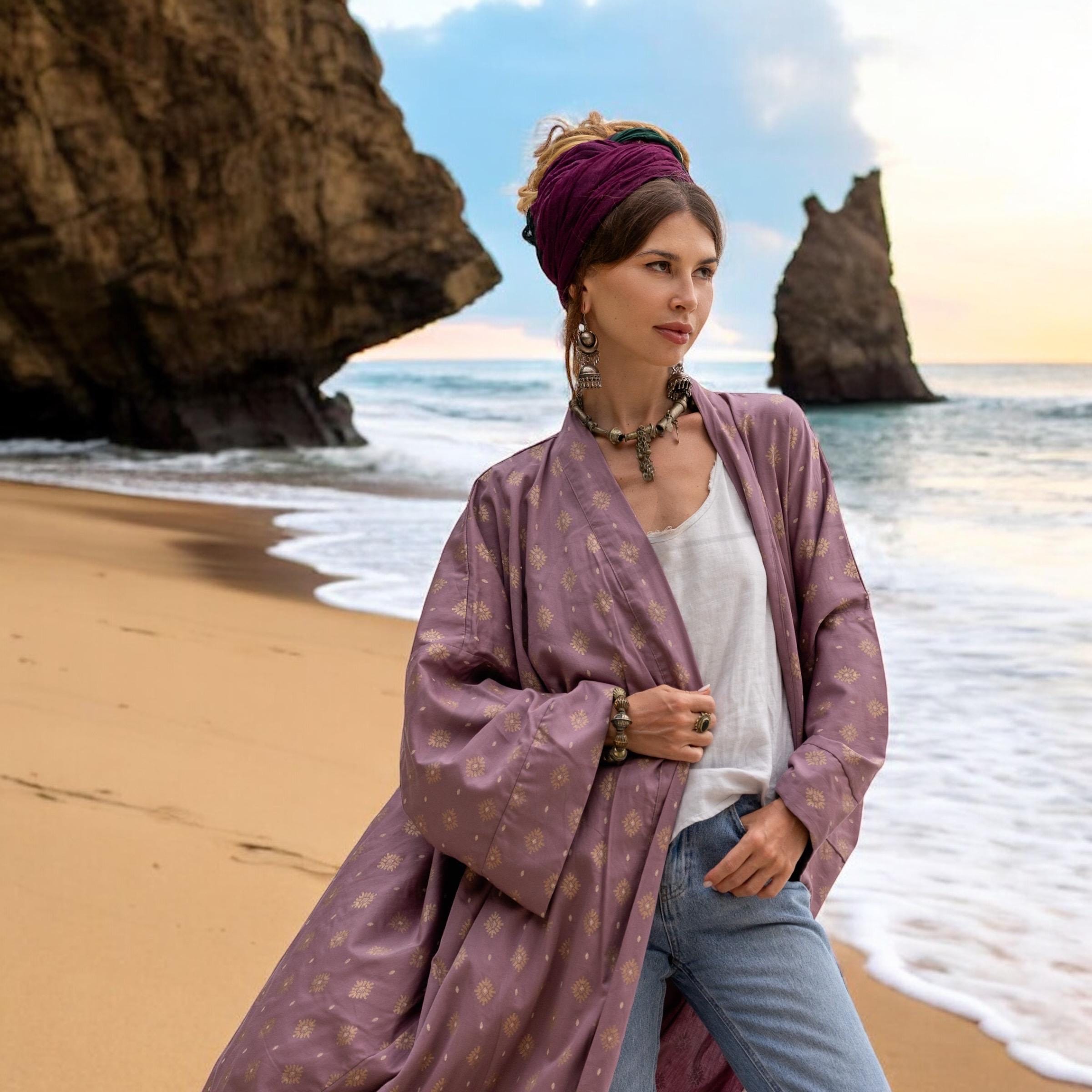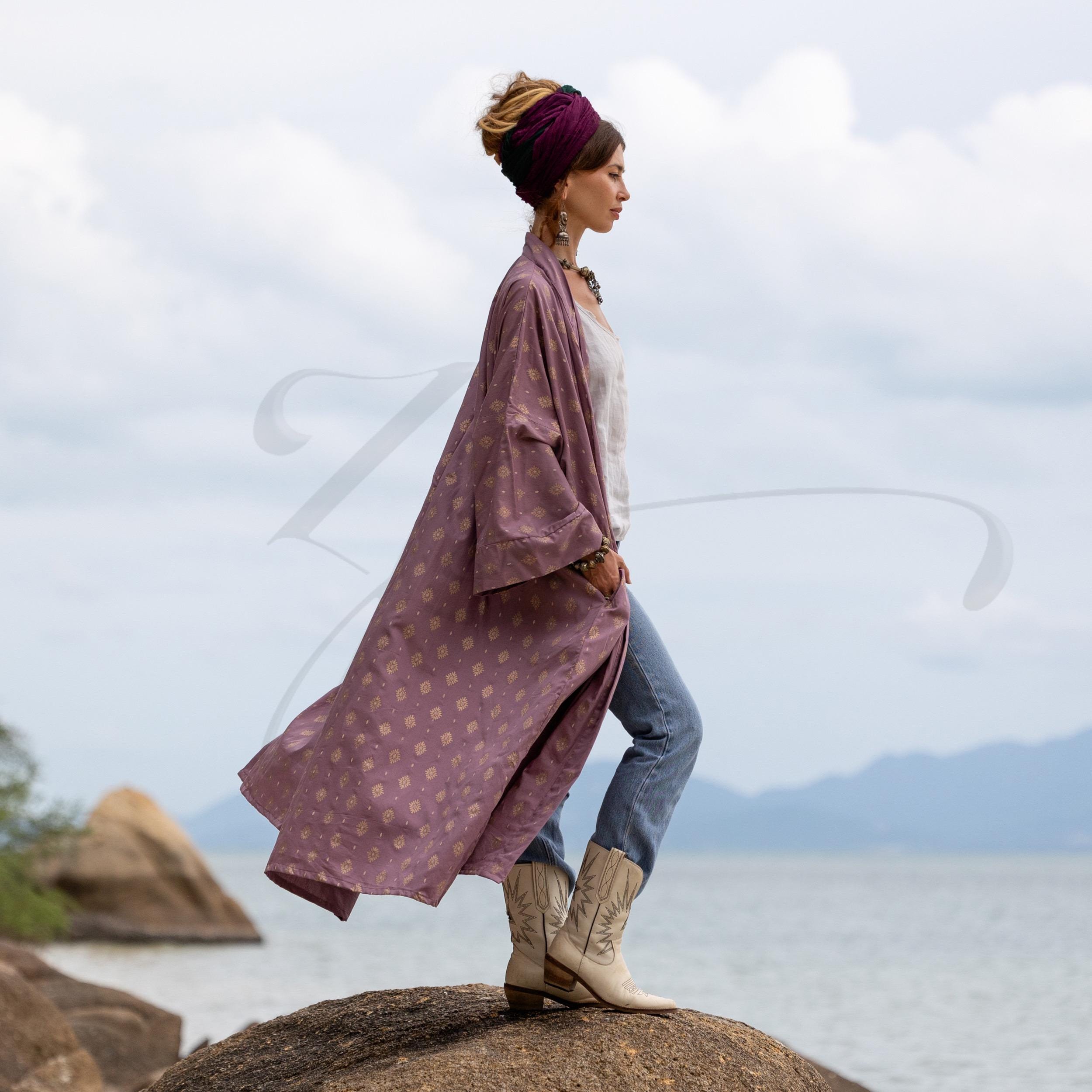 Boho Kimono Duster: Willow Plum Rayon Robe – Bridal Cover-Up – Alura