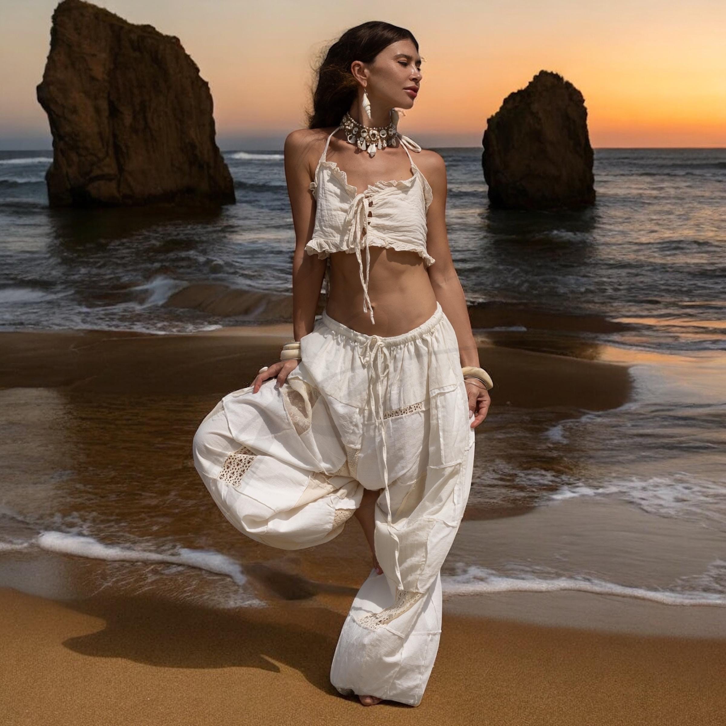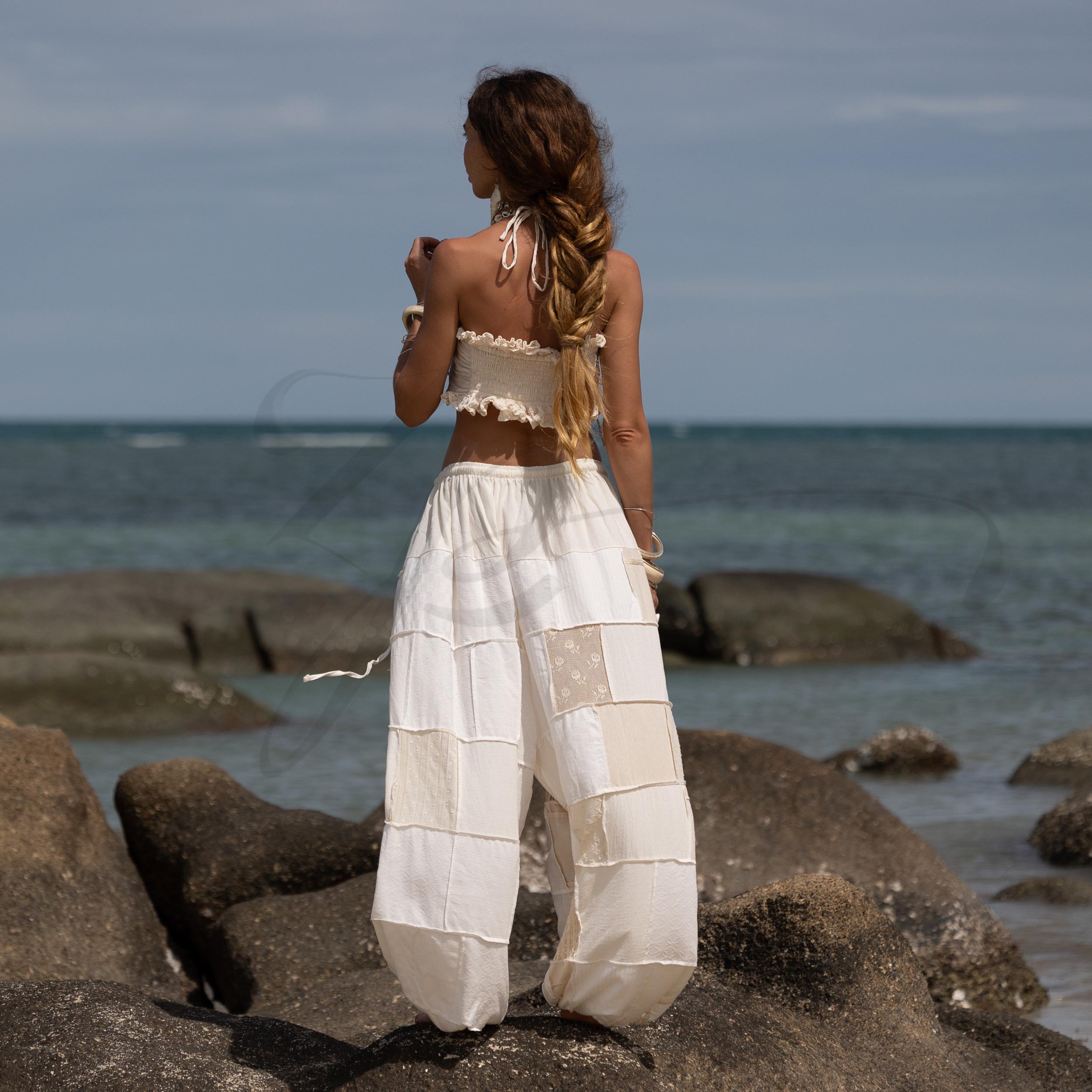 Boho Lace Patchwork Cotton Pants: Wide Leg Festival Trousers – Chesa