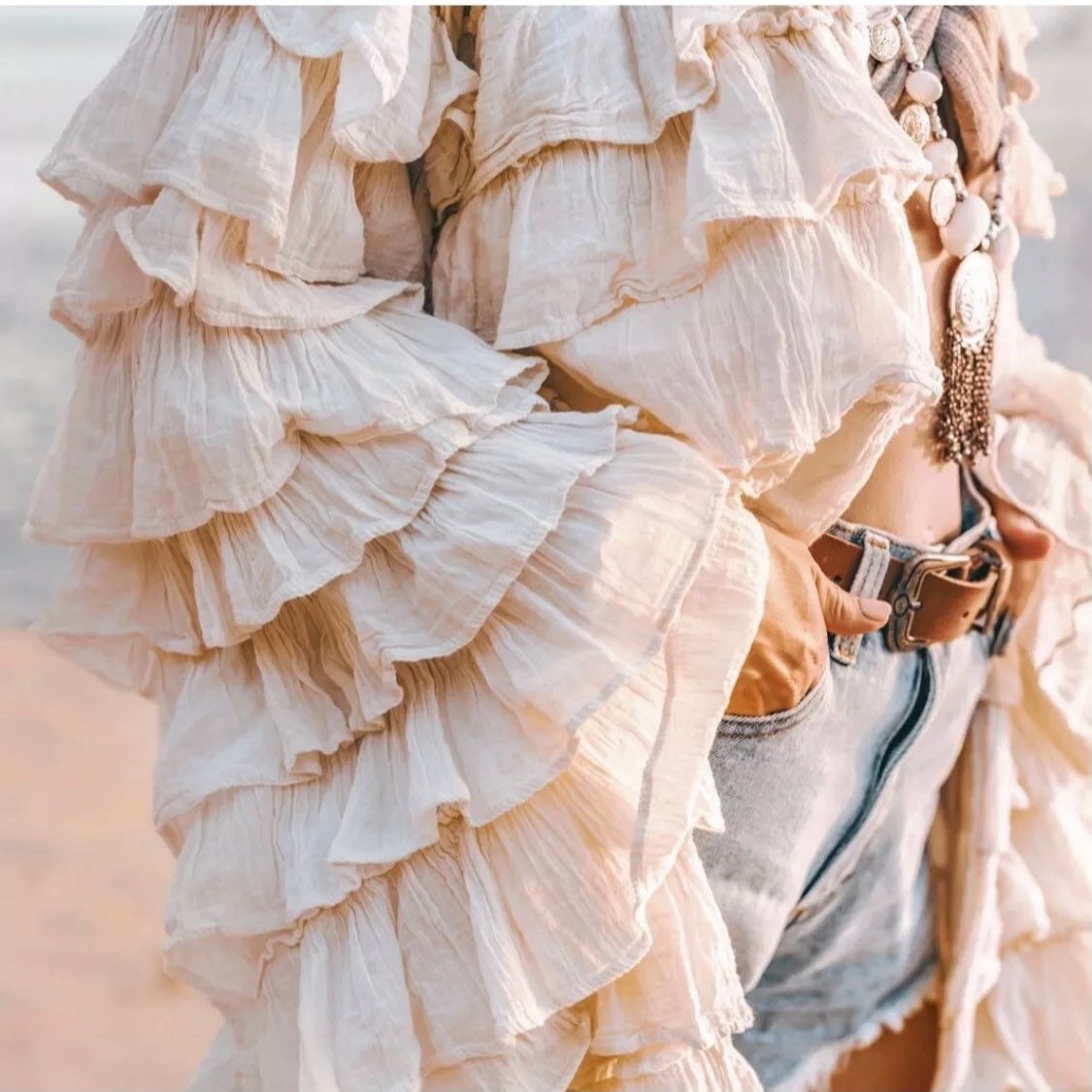 Transform your wardrobe with this vintage-inspired maxi duster kimono by ZinniaPearl. Designed in a cascading, tiered ruffle silhouette, it’s perfect for elevating your boho-chic style. Whether you’re strolling along the beach, attending a summer festival, or celebrating love at a wedding, this piece is a stunning choice.