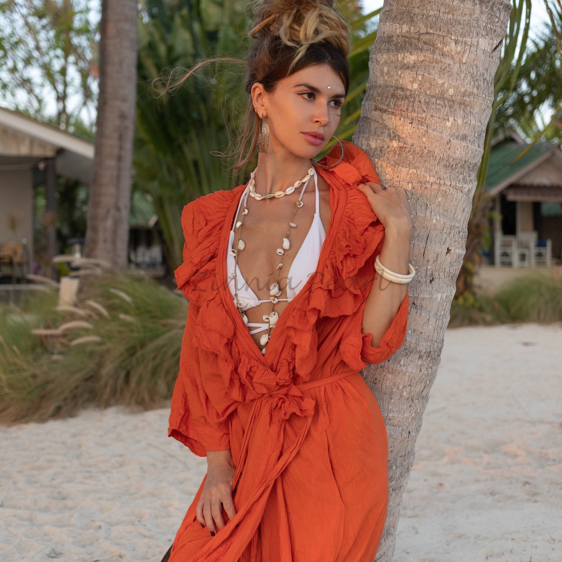 Boho Ruffled Maxi Duster Kimono: Raw Cotton Beach Cover-Up – Avalon