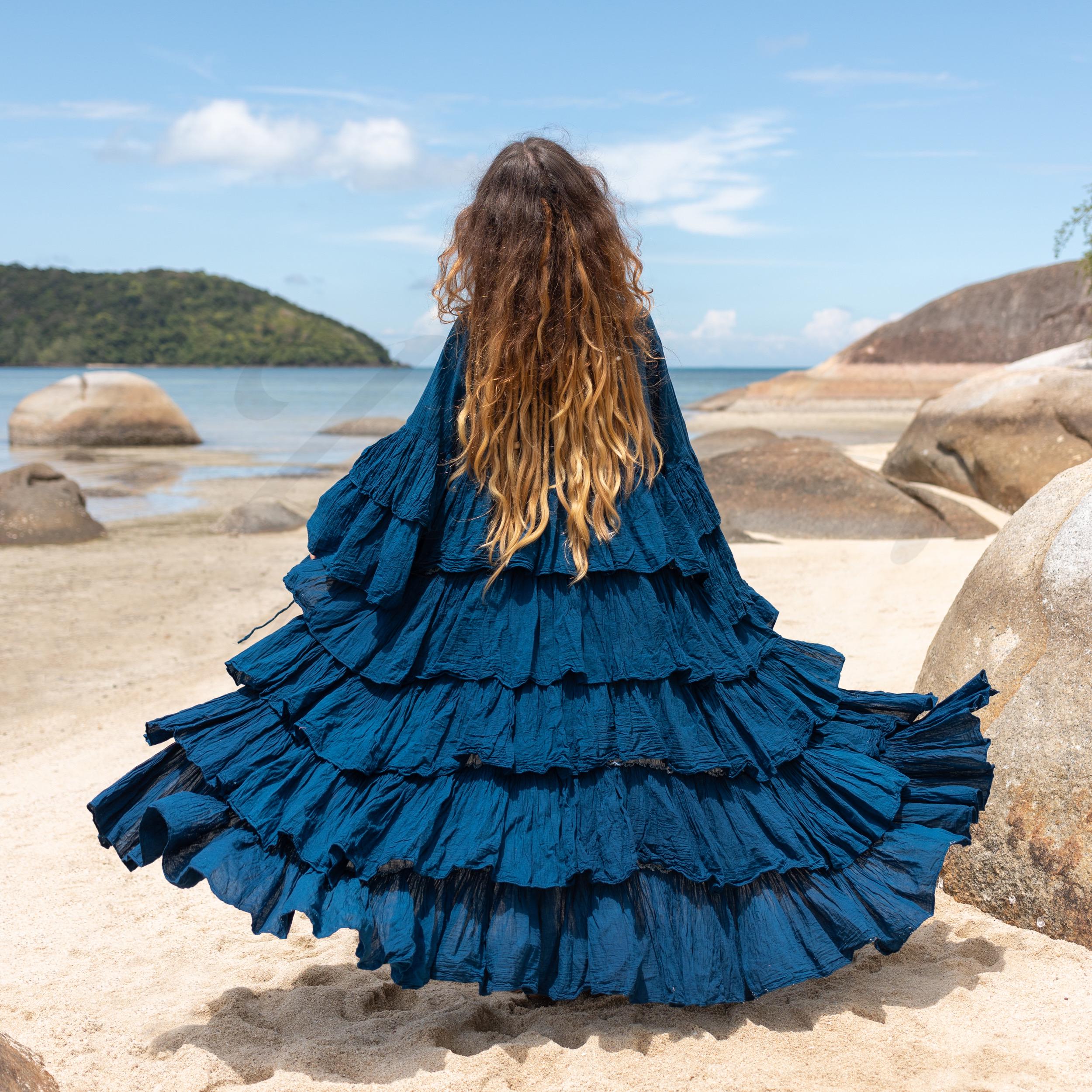 Boho Ruffled Raw Cotton Kimono Duster – Handcrafted Bali Style