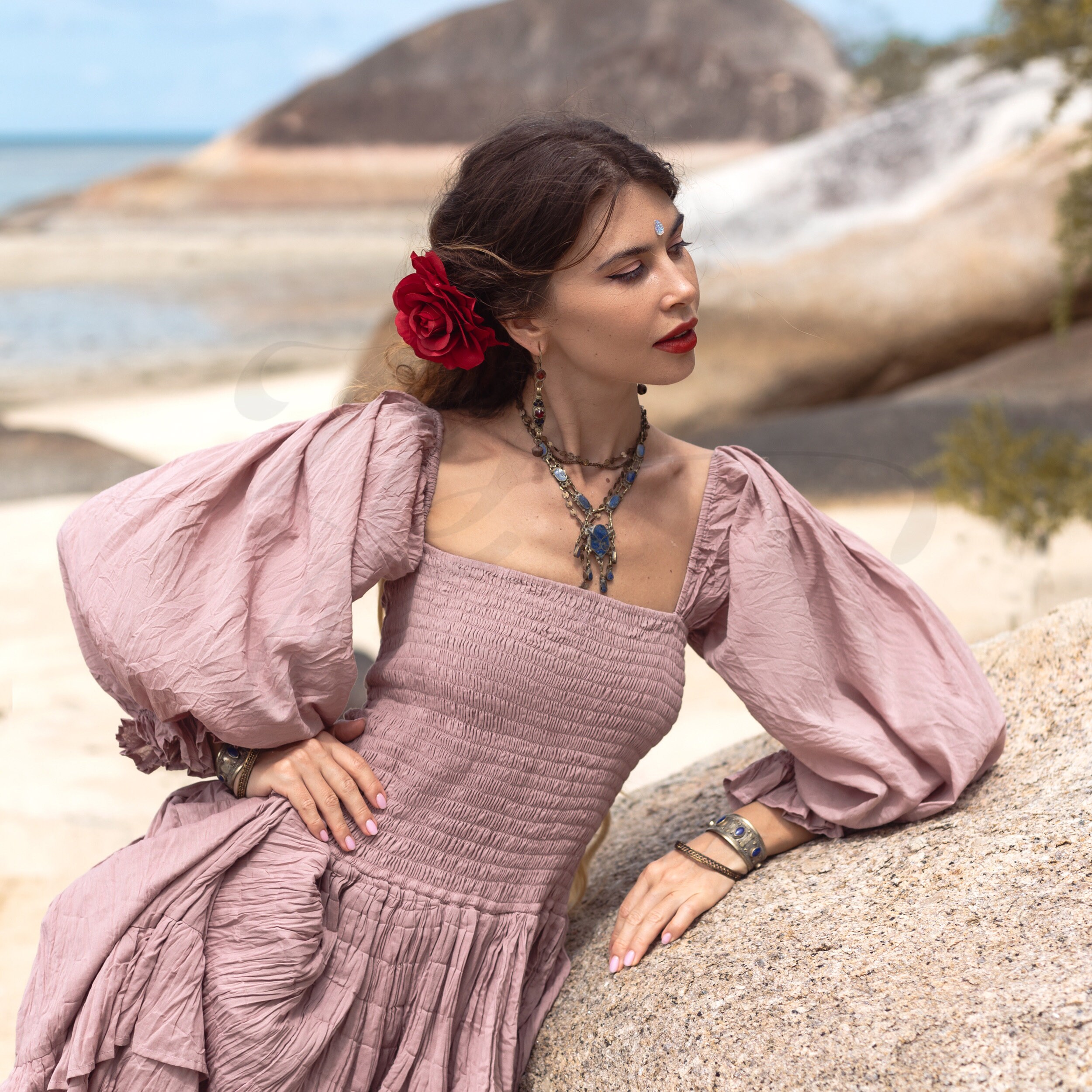 Step into a world of timeless elegance and romance with our latest boho-chic dress, the Isabella Amore.