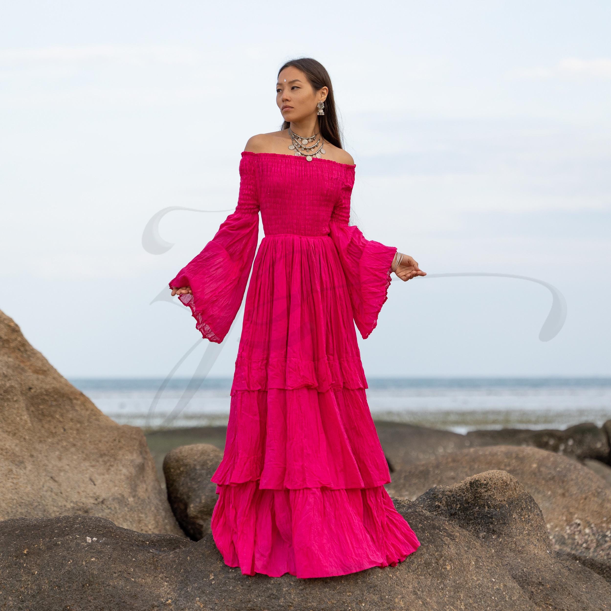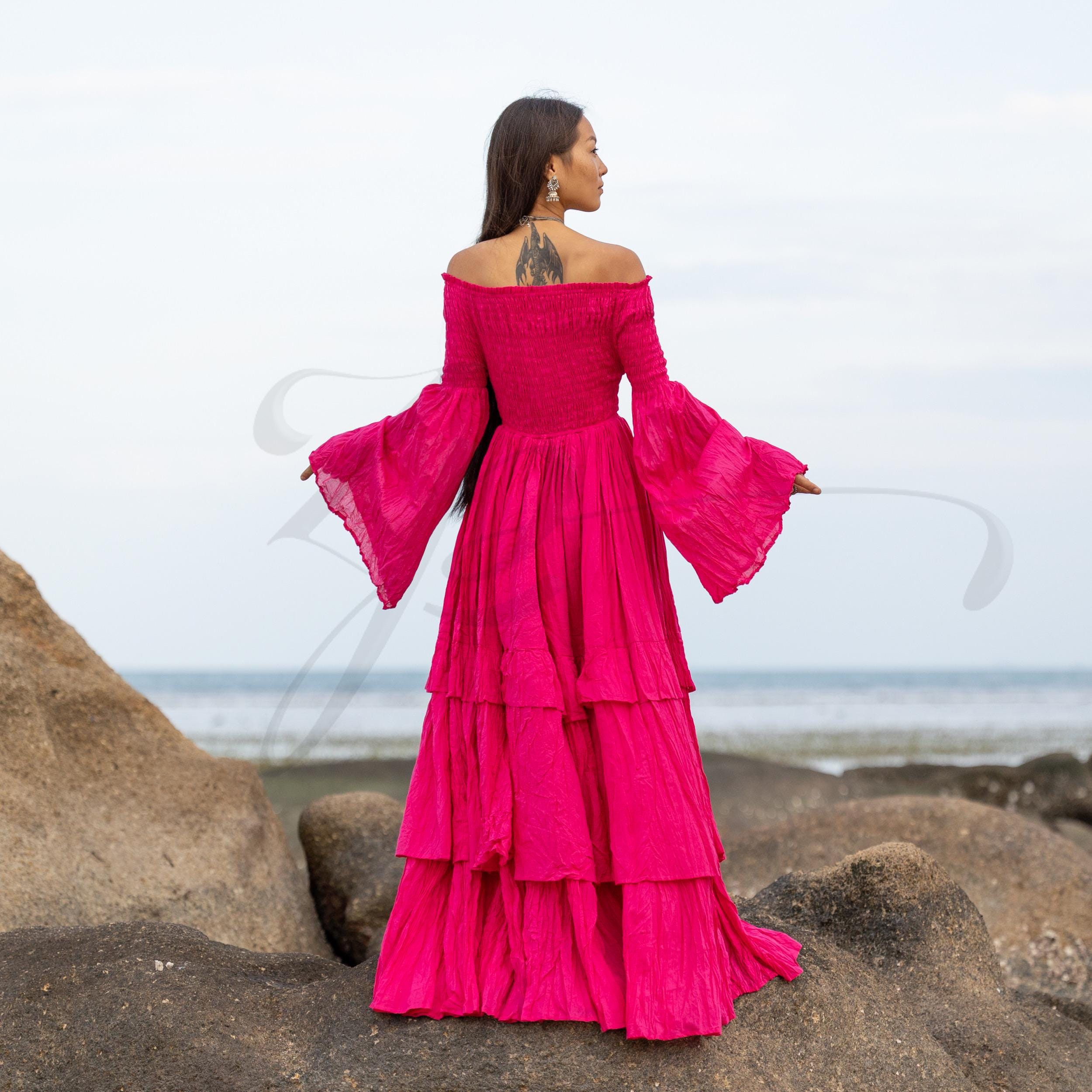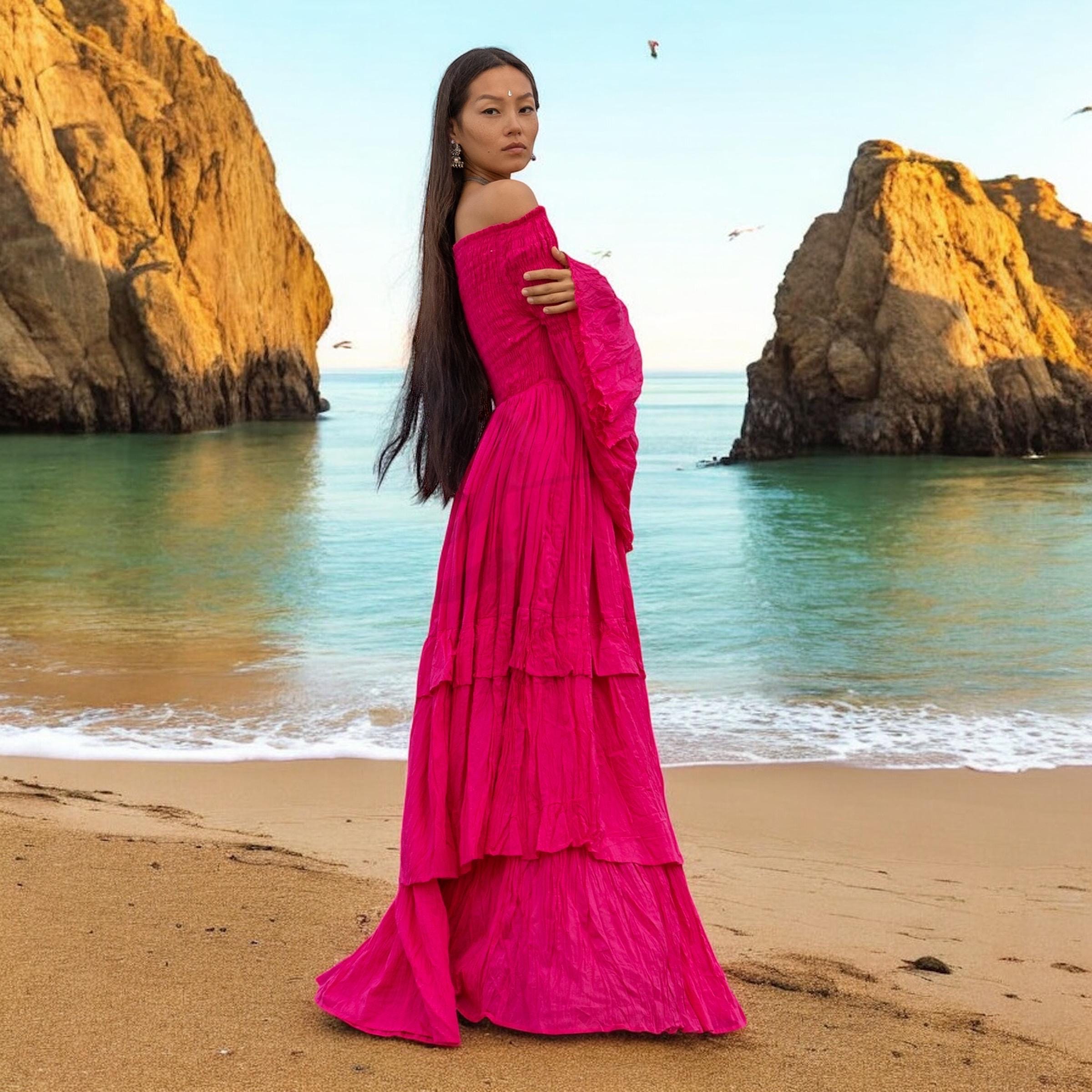 Step into fierce femininity with the Lucia Maxi Dress in Viva Peony—a joyful magenta-pink hue inspired by tropical blooms, sacred rites, and bold self-expression. Crafted from breathable, raw cotton voile, this gown is a vision of freedom, made for barefoot brides, goddess circles, desert ceremonies, and sun-kissed elopements.