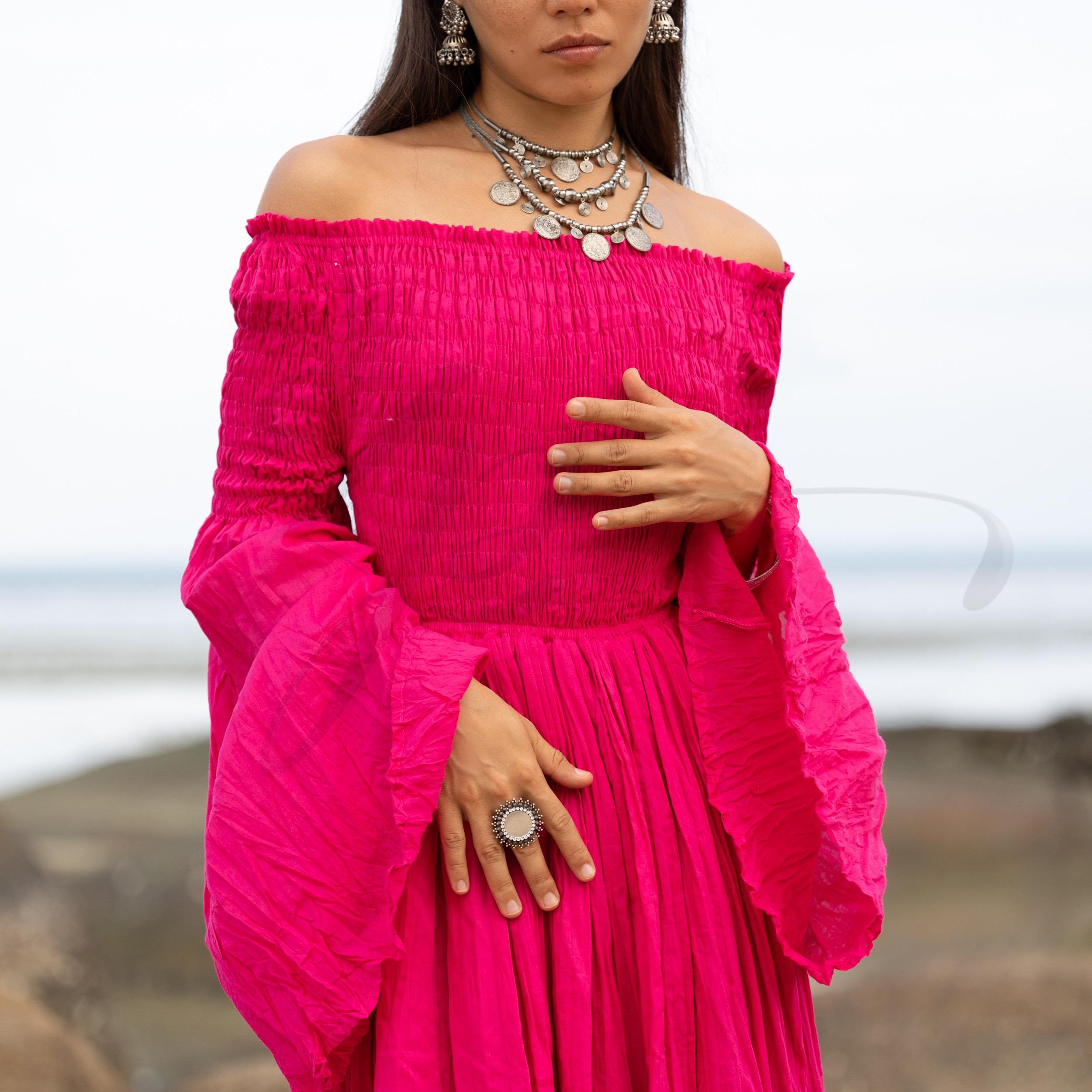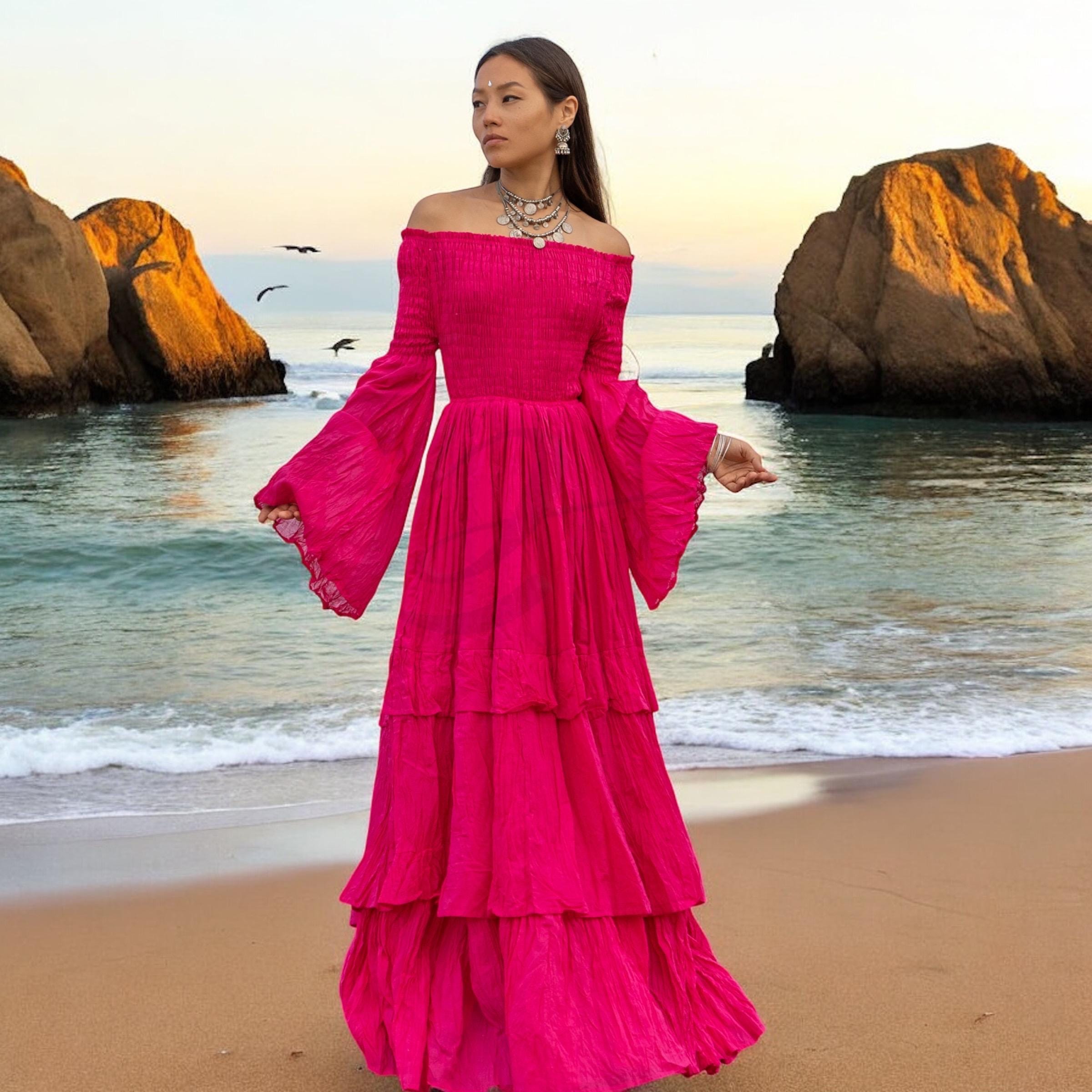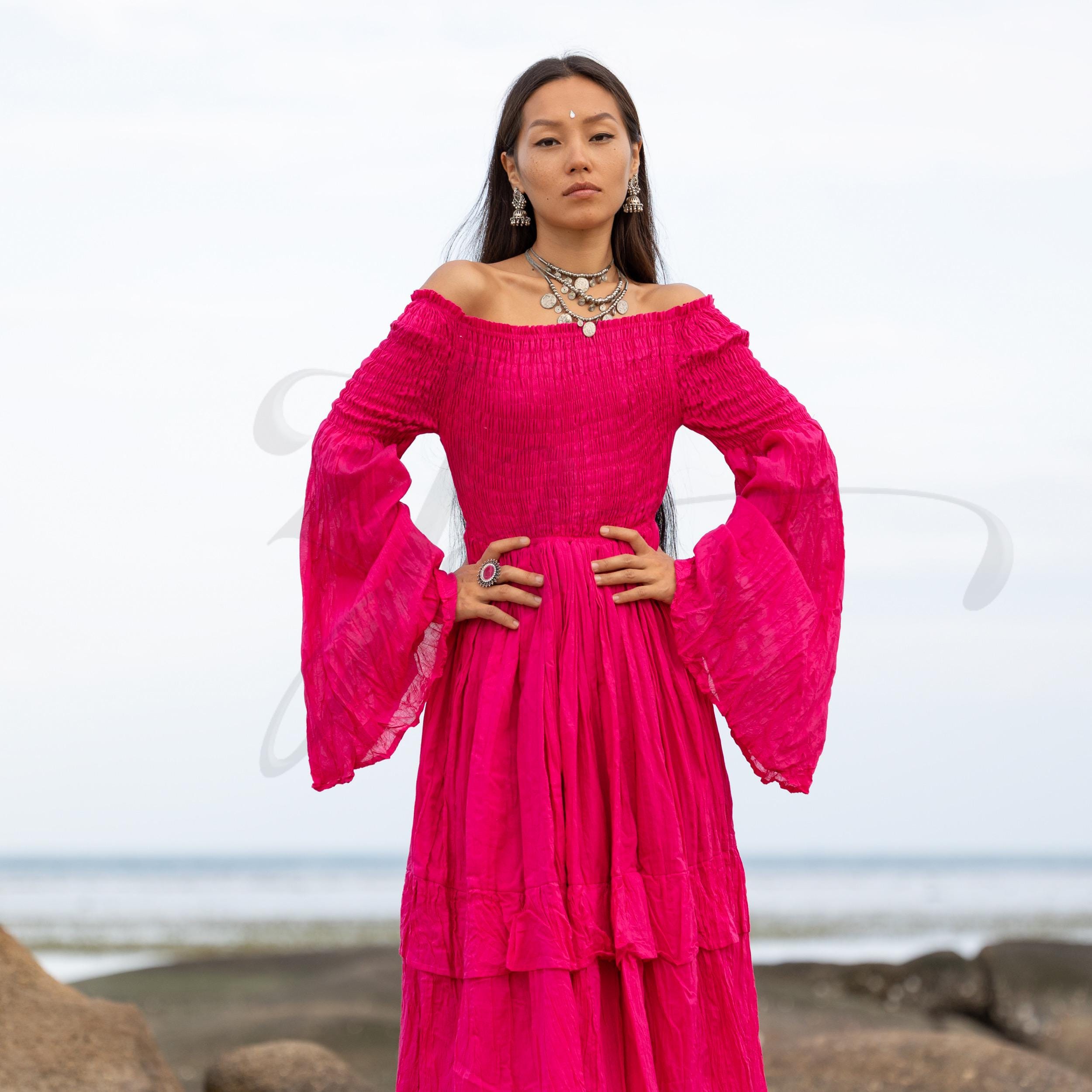 Step into fierce femininity with the Lucia Maxi Dress in Viva Peony—a joyful magenta-pink hue inspired by tropical blooms, sacred rites, and bold self-expression. Crafted from breathable, raw cotton voile, this gown is a vision of freedom, made for barefoot brides, goddess circles, desert ceremonies, and sun-kissed elopements.